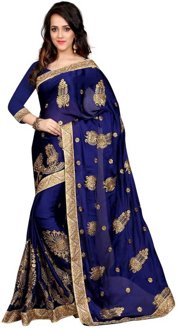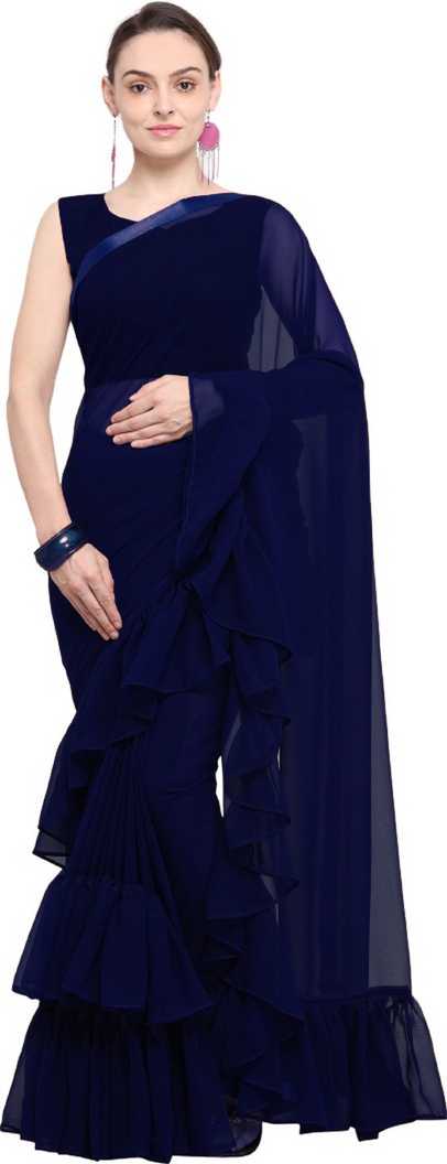Solid Fashion Georgette Saree (Dark Blue)