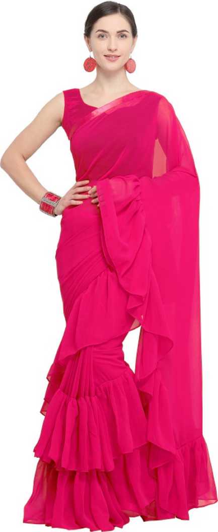 Solid Fashion Georgette Saree (Pink)