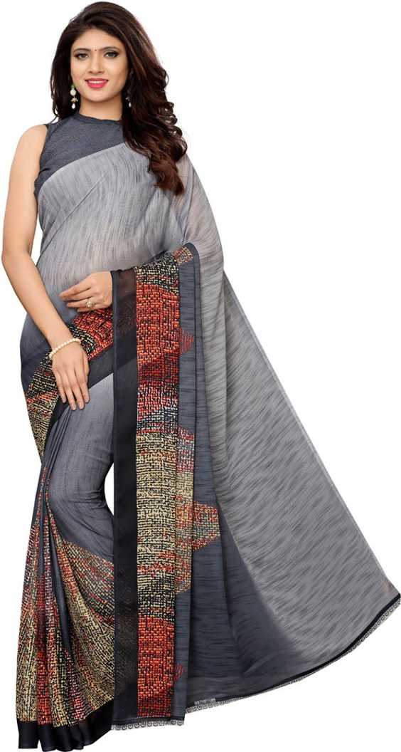 Floral Print, Geometric Print, Printed Bollywood Chiffon, Georgette Saree ...