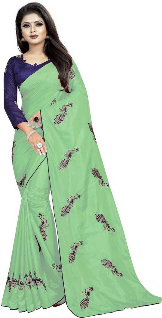 Embroidered Fashion Art Silk Saree (Light Green)