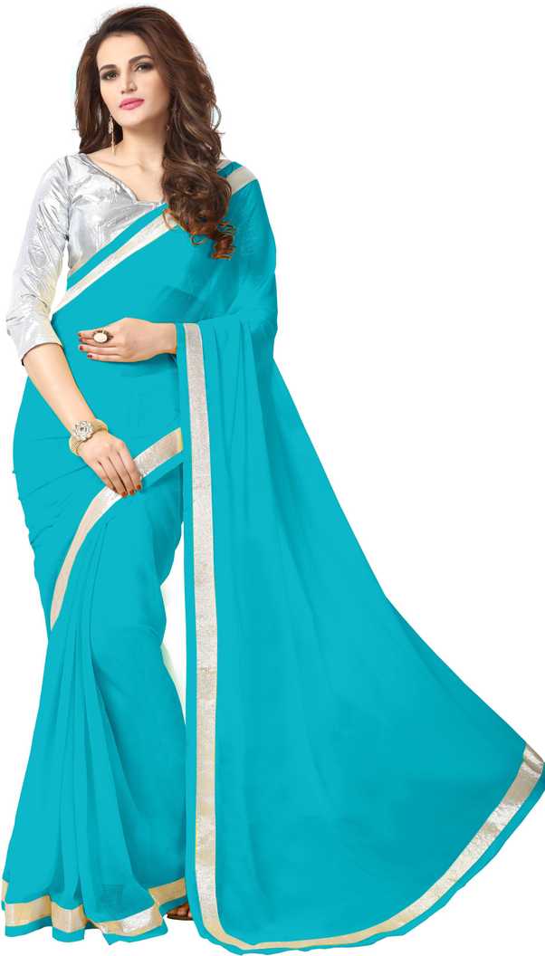 Solid Daily Wear Poly Georgette Saree (Light Blue)#JustHere