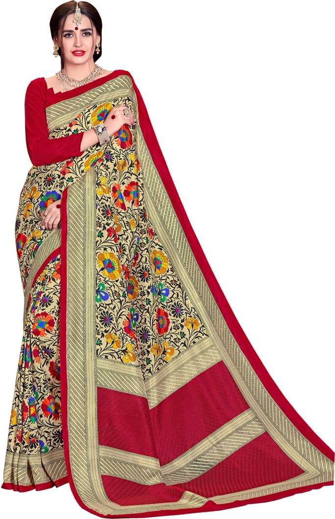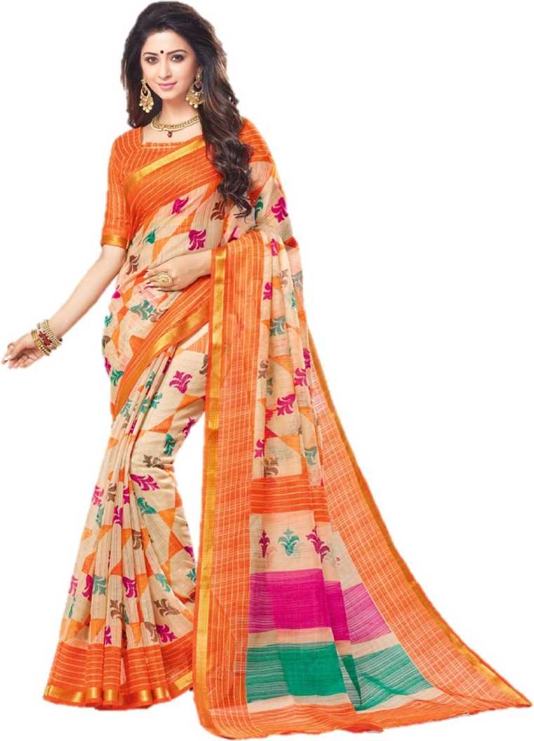 Printed Bhagalpuri Silk Cotton Blend Saree (Multicolor)