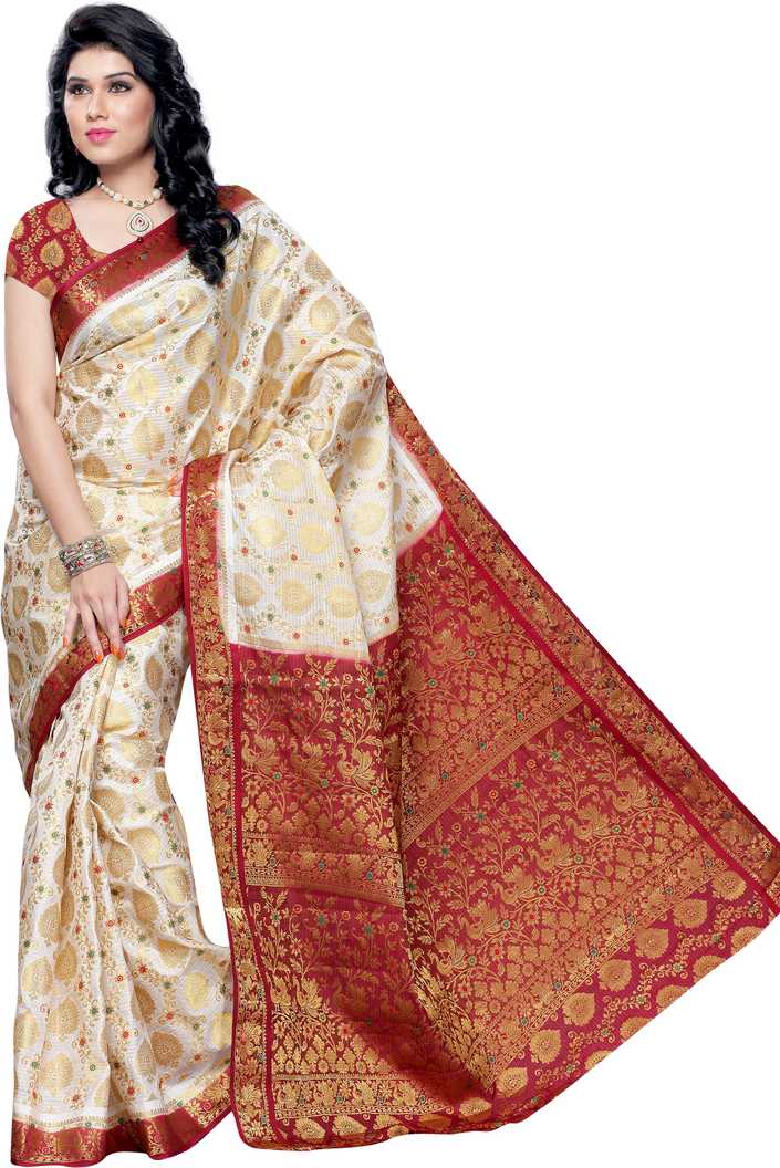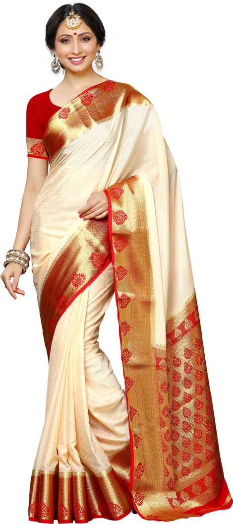Embellished Kanjivaram Poly Crepe Saree (Cream)