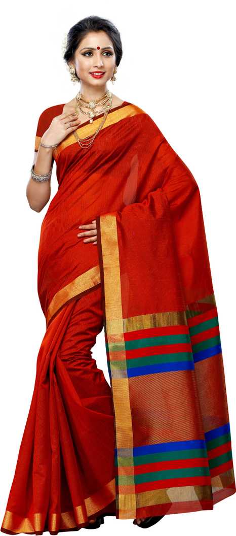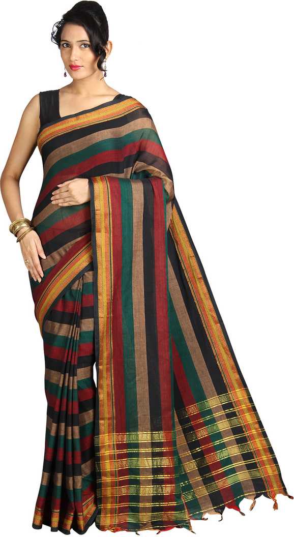 Striped Mangalagiri Cotton Blend Saree (Multicolor)