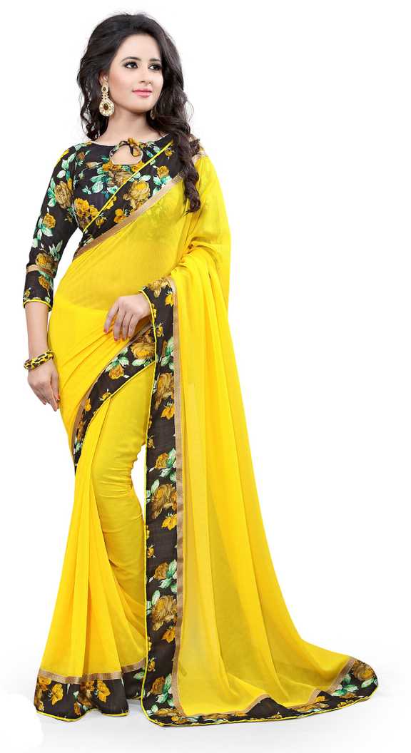 Self Design, Solid, Printed Fashion Poly Georgette Saree (Yellow)