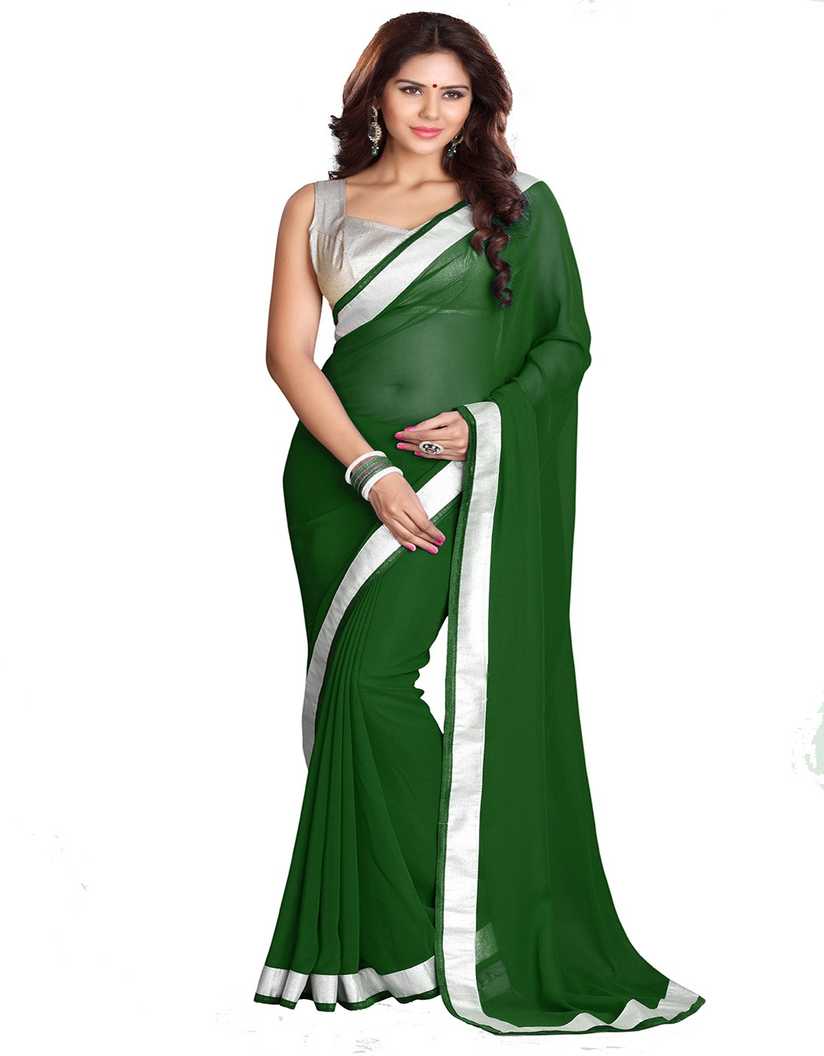 Self Design, Solid, Printed Fashion Poly Georgette Saree (Green)
