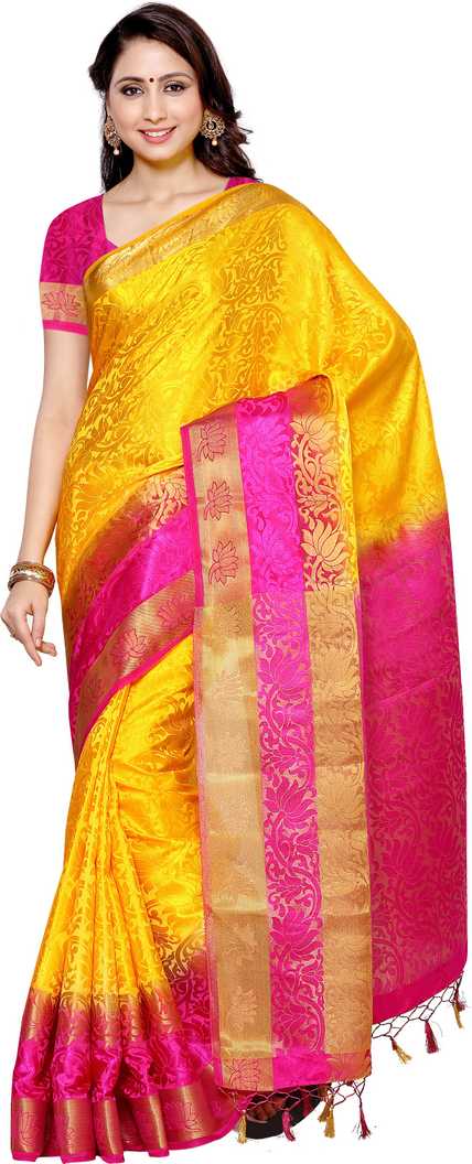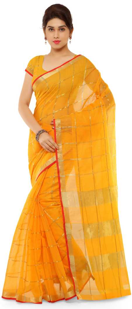 Woven, Self Design Banarasi Cotton Blend Saree (Yellow)