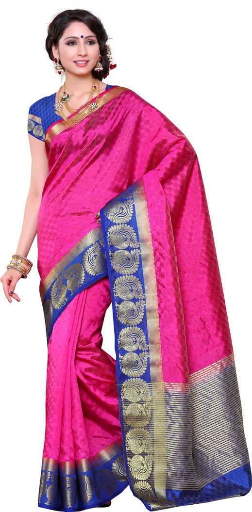 Printed Kanjivaram Tussar Silk Saree (Pink)