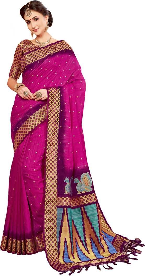 Self Design Patola Banarasi Silk, Jacquard, Silk Saree (Dark Blue, Red, Or...