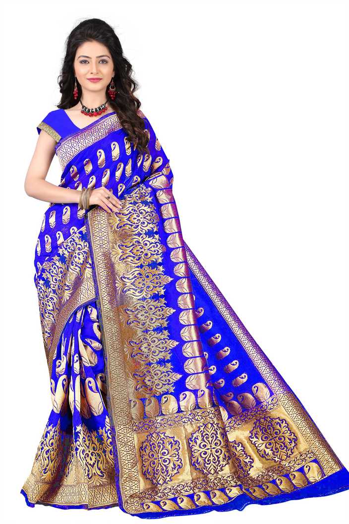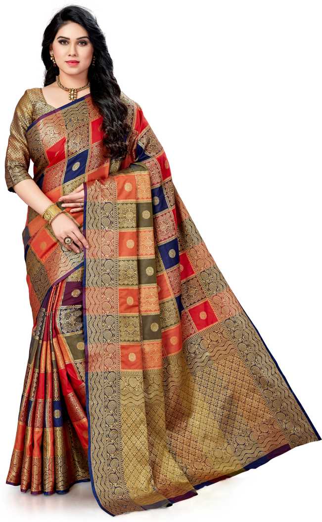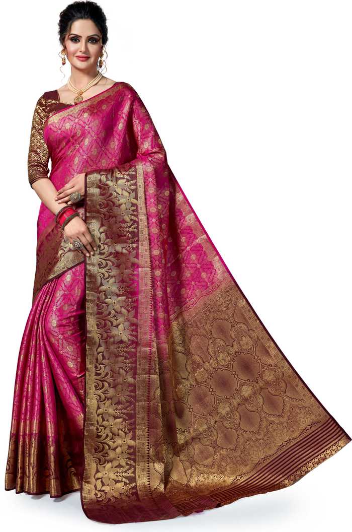 Woven, Solid, Self Design Kanjivaram Banarasi Silk, Jacquard, Silk Saree (...
