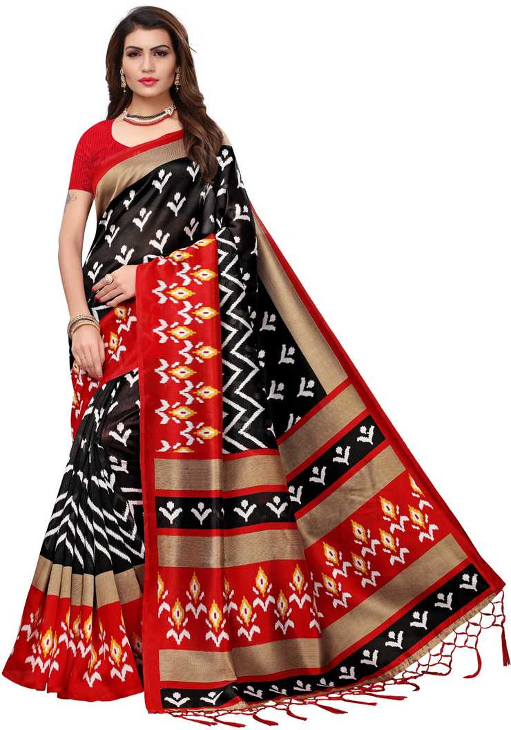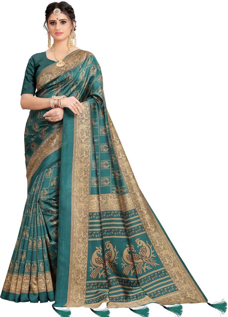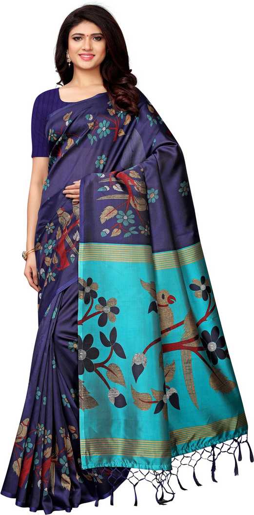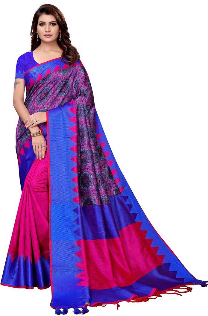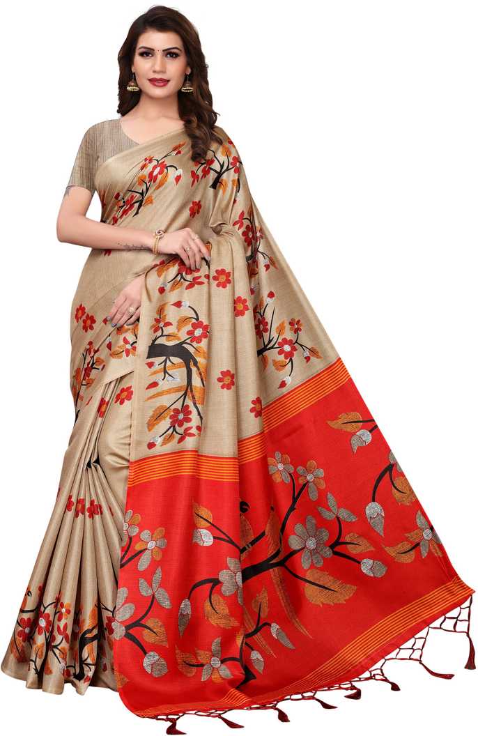 Floral Print, Printed Assam Silk Poly Silk, Cotton, Silk, Printed Silk Sare...