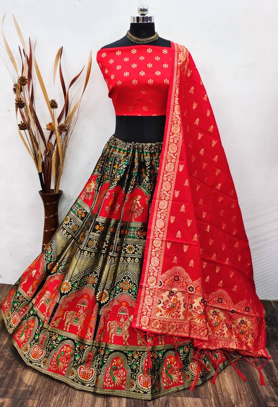Self Design, Printed Semi Stitched Lehenga Choli (Black, Red)