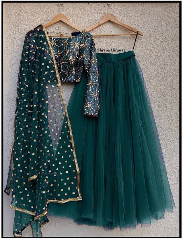 DEVAM FAB Solid Semi Stitched Lehenga Choli (Light Green)