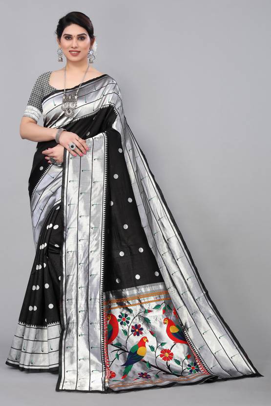 Bandhani Hub Woven Paithani Cotton Silk Saree (Black)