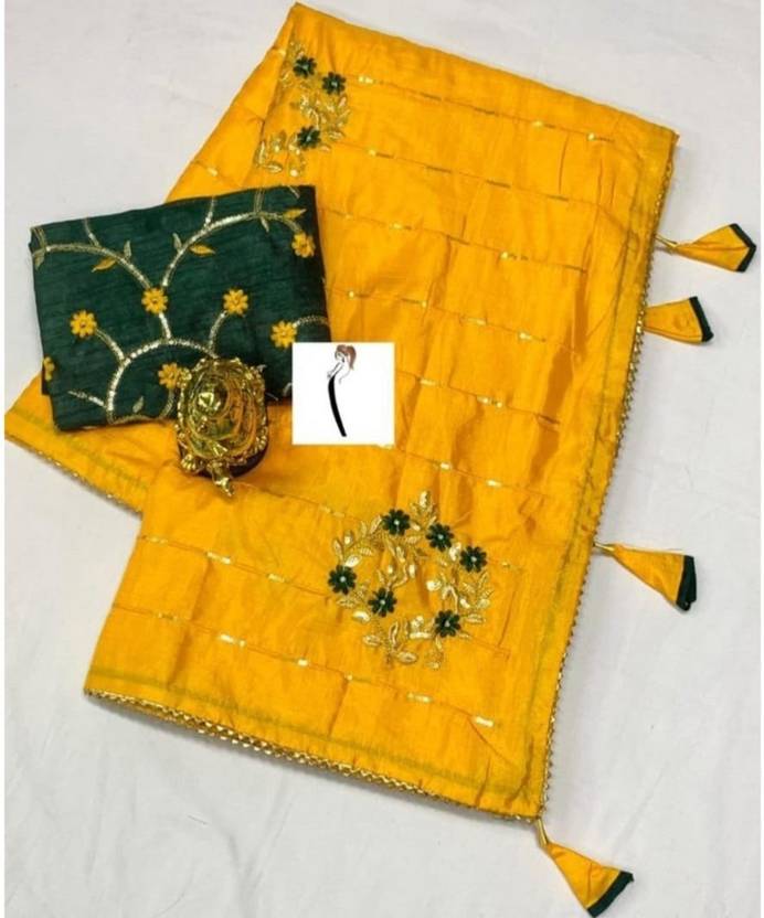 sadika Embroidered Bollywood Pure Silk Saree (Yellow)