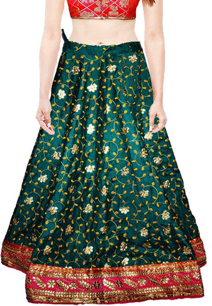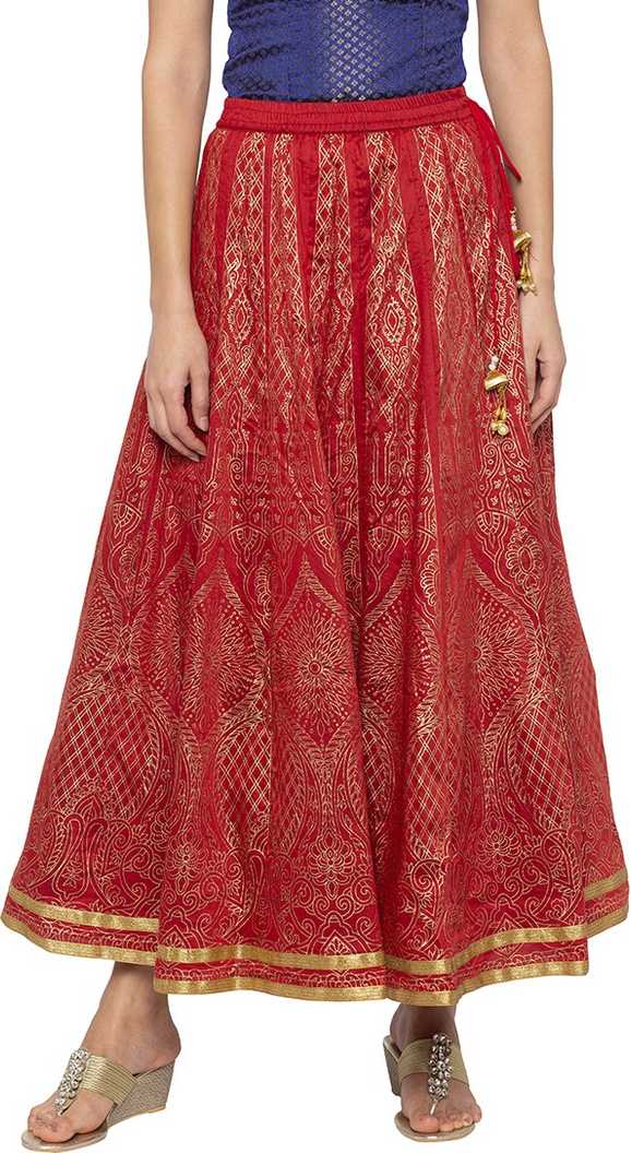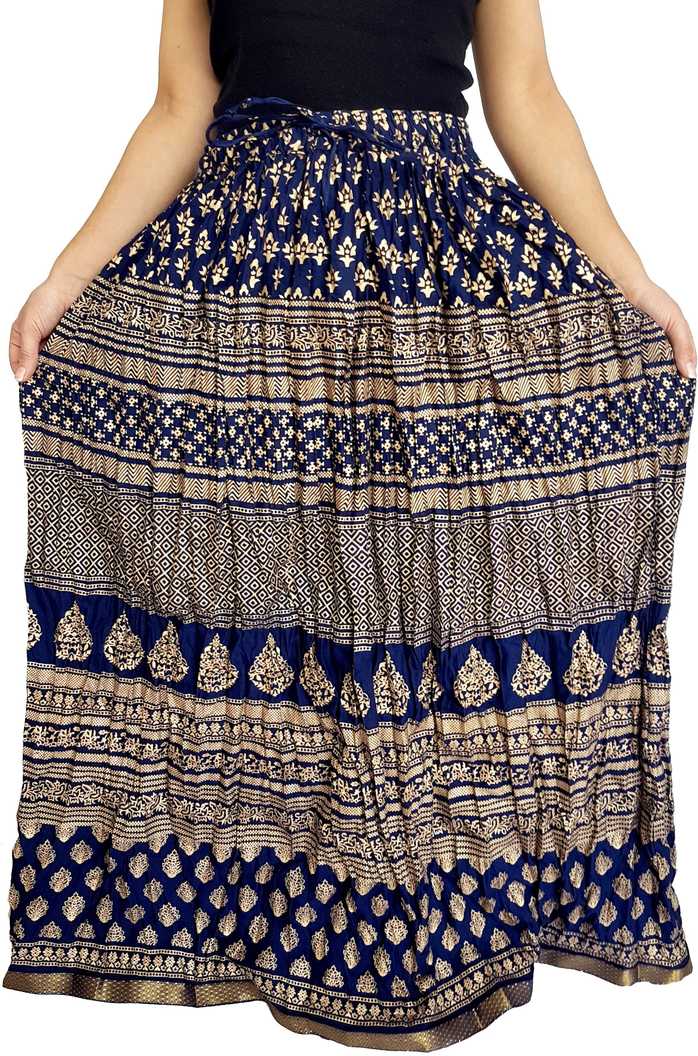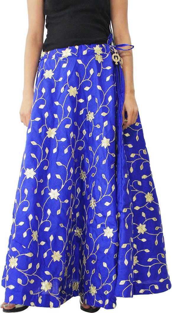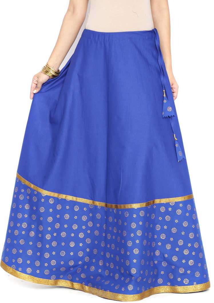 Women Floral Print, Printed, Solid Flared Dark Blue, Gold Skirt