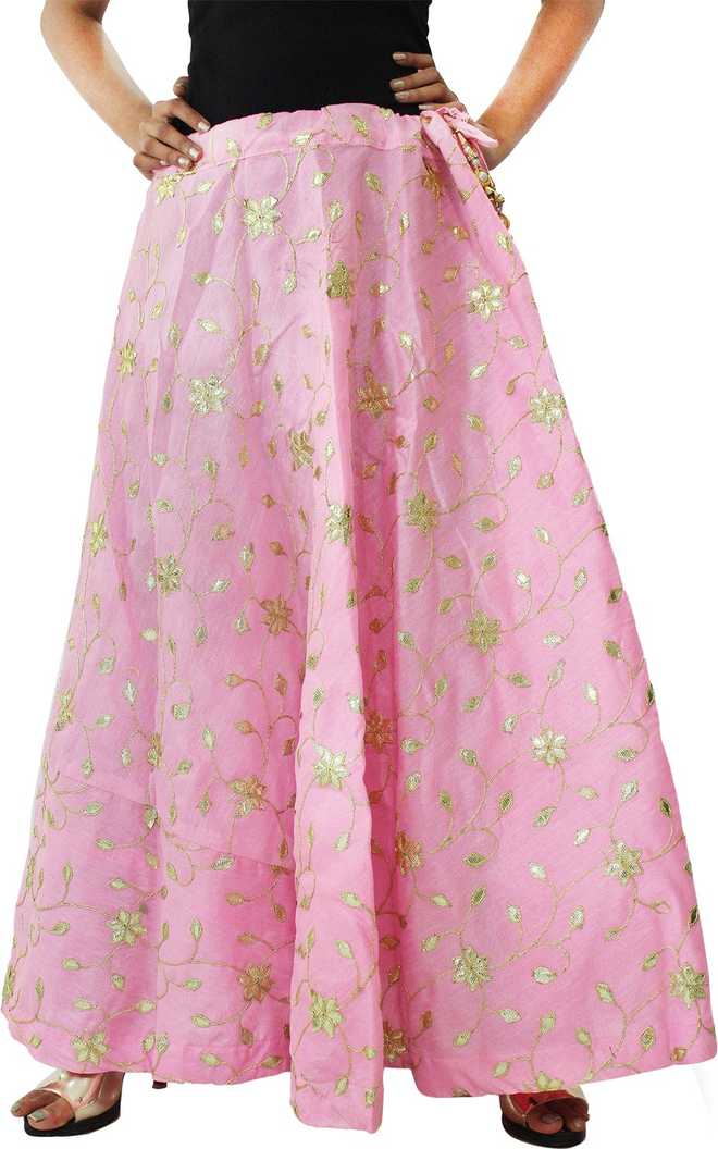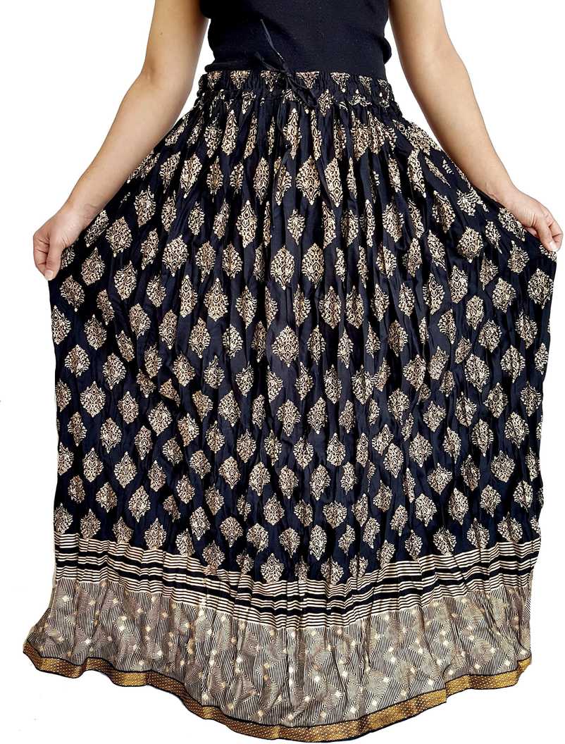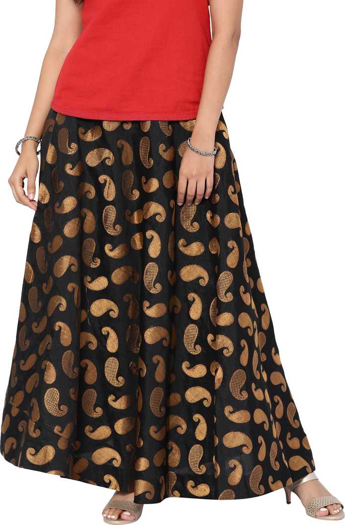Women Floral Print, Printed, Solid Flared Black, Gold Skirt