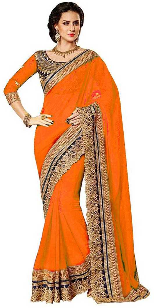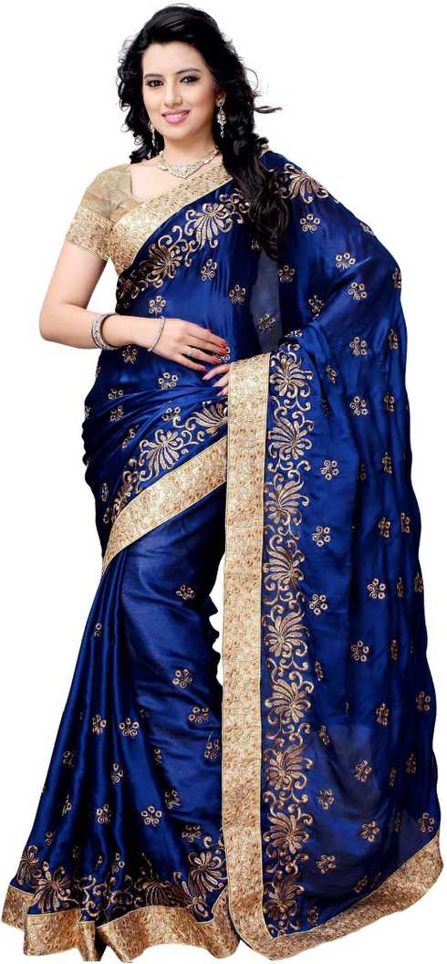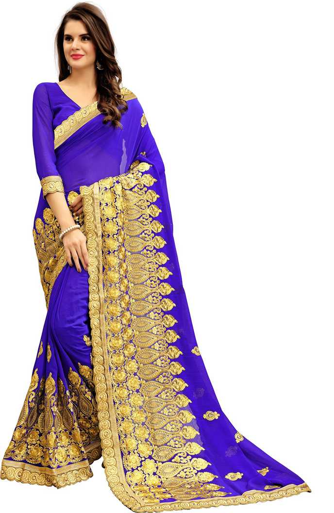 Embroidered Fashion Poly Georgette Saree (Blue)