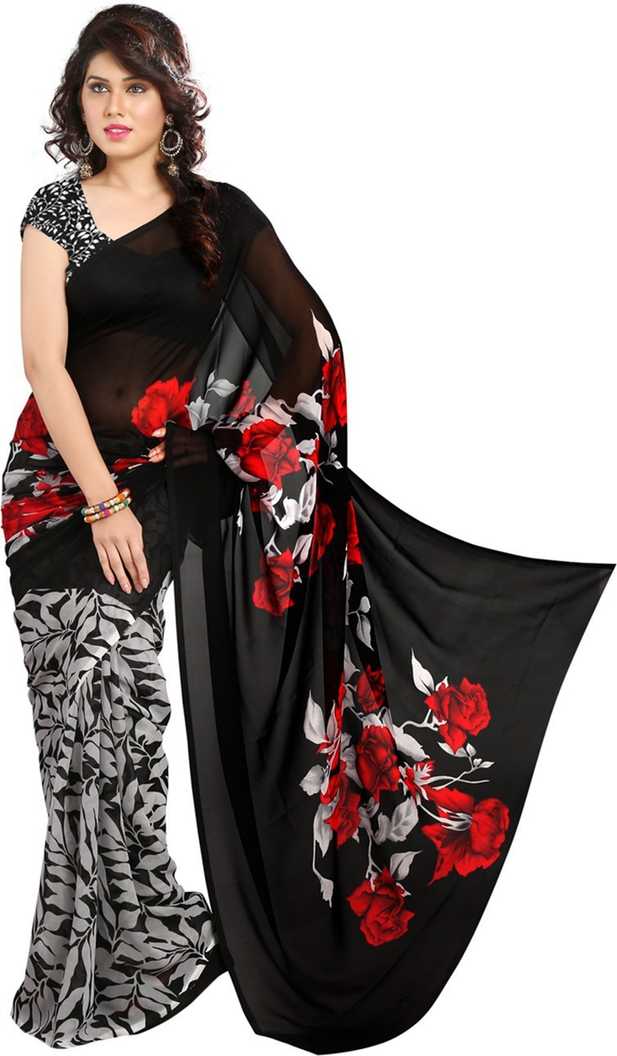 Printed Fashion Poly Georgette Saree (Red)#JustHere