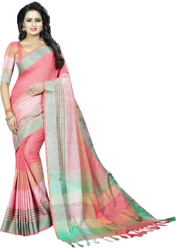 Striped Fashion Cotton, Cotton Silk, Silk, Linen Saree (Pink)