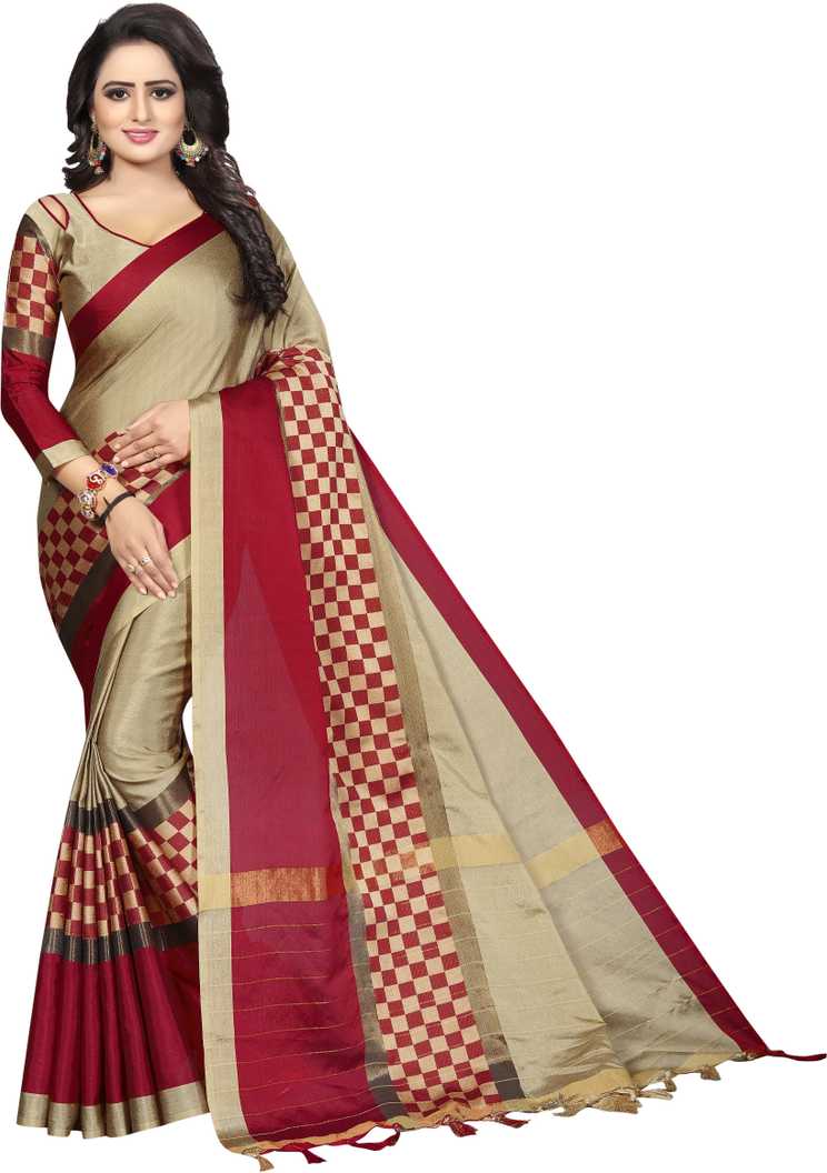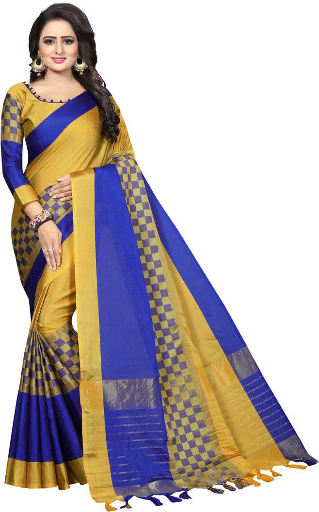 Checkered, Self Design Daily Wear Cotton, Banarasi Silk, Silk Saree (Gold)