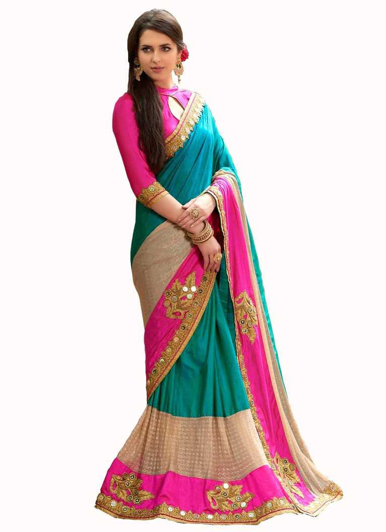 Embroidered Bollywood Lycra Blend Saree (Multicolor)
