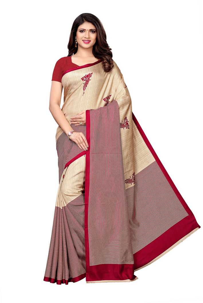 Floral Print, Printed Assam Silk Poly Silk, Cotton, Silk, Printed Silk Sare...