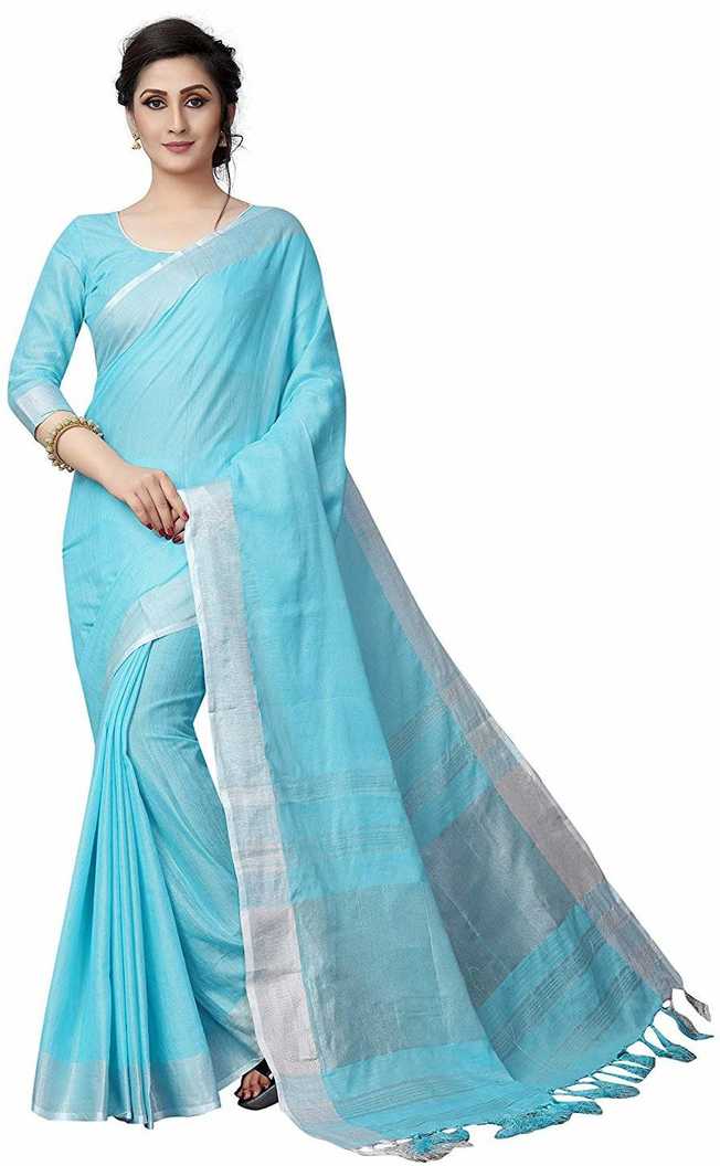 Solid, Self Design Bollywood Linen, Cotton, Banarasi Silk, Silk Saree (Lig...
