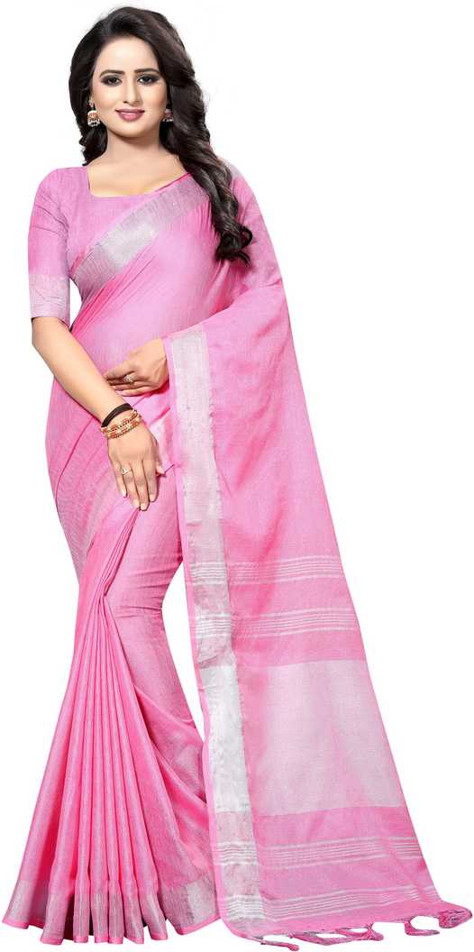 Solid, Self Design Bollywood Linen, Cotton, Banarasi Silk, Silk Saree (Pin...