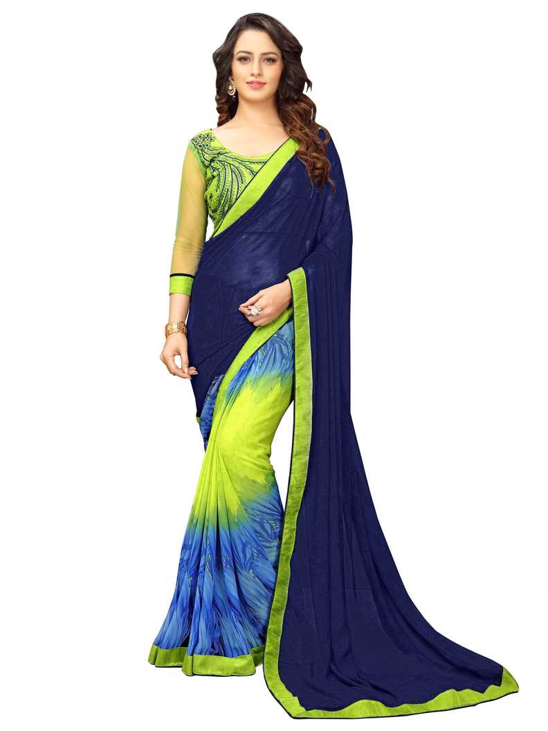Printed Fashion Poly Georgette Saree (Dark Blue)#JustHere