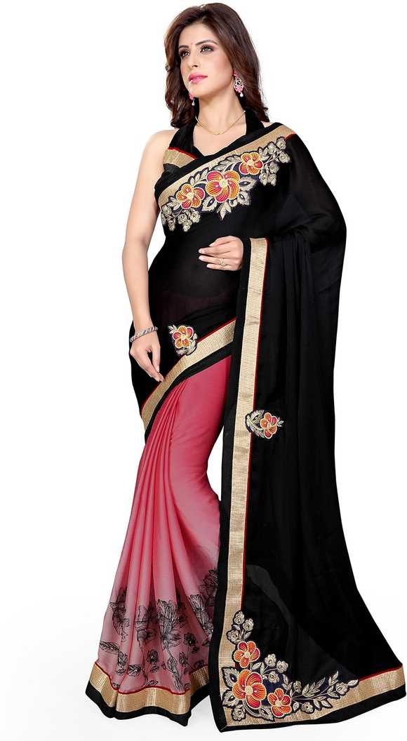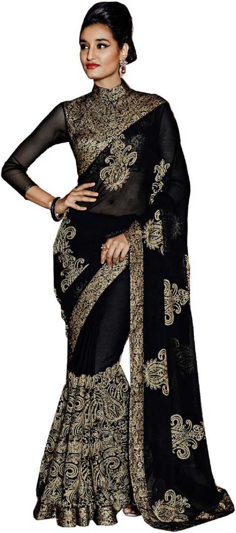 Embroidered Fashion Chiffon Saree (Black)