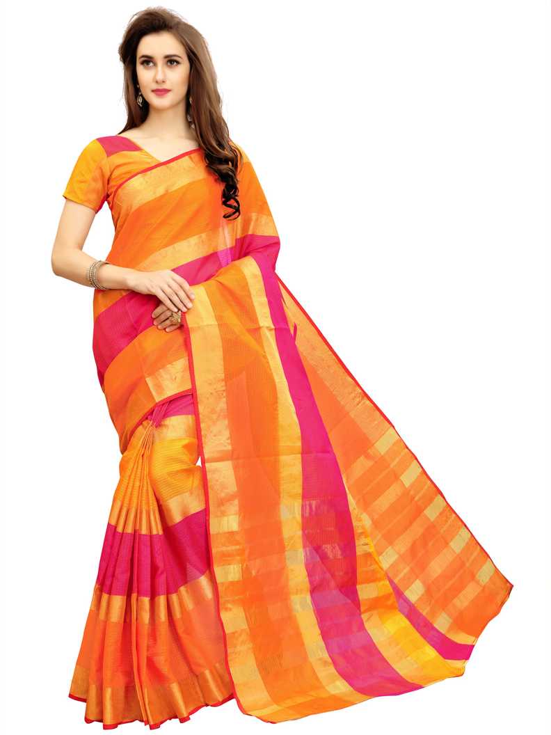 Striped Fashion Poly Silk Saree (Orange)#JustHere