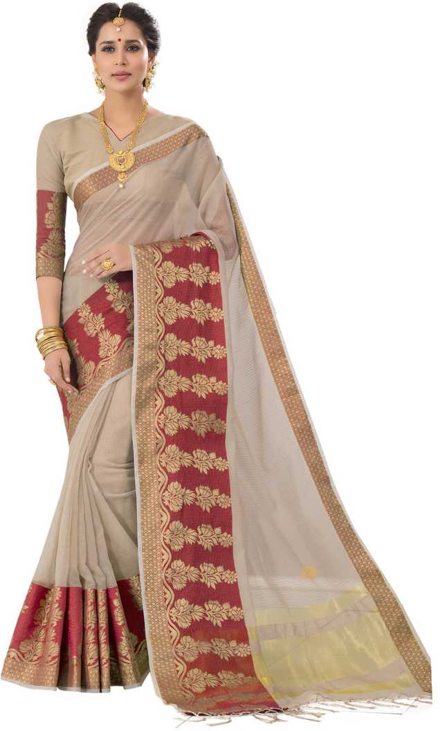 Woven Banarasi Cotton Silk Saree (Grey, Maroon)