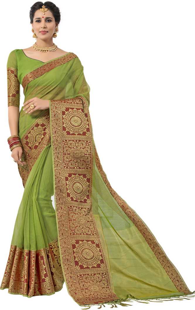 Woven Kota Doria Polycotton Saree (Green)