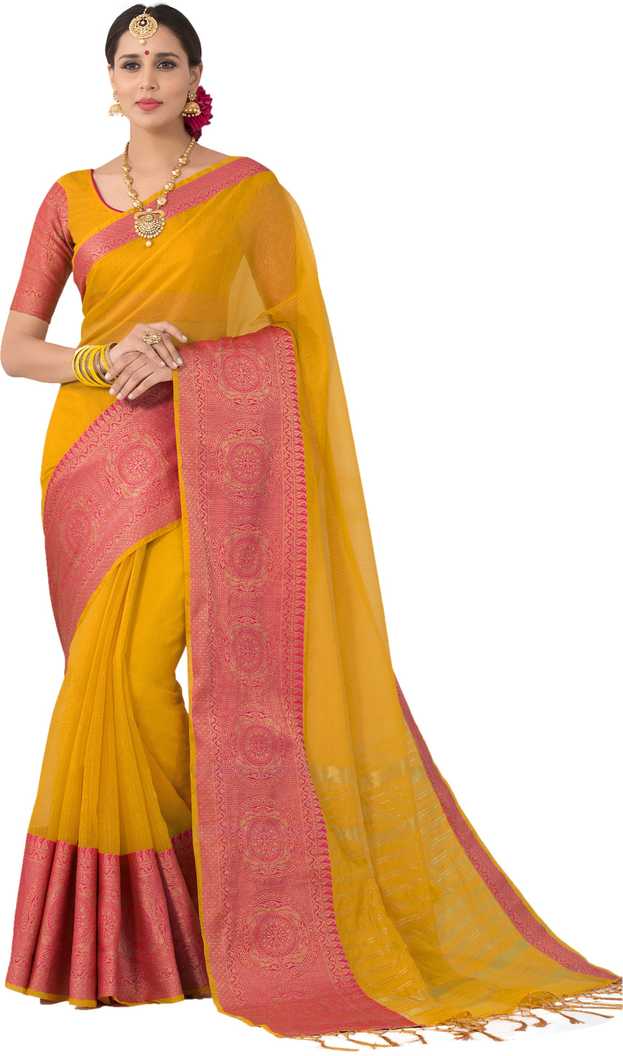 Woven Banarasi Poly Silk Saree (Yellow)