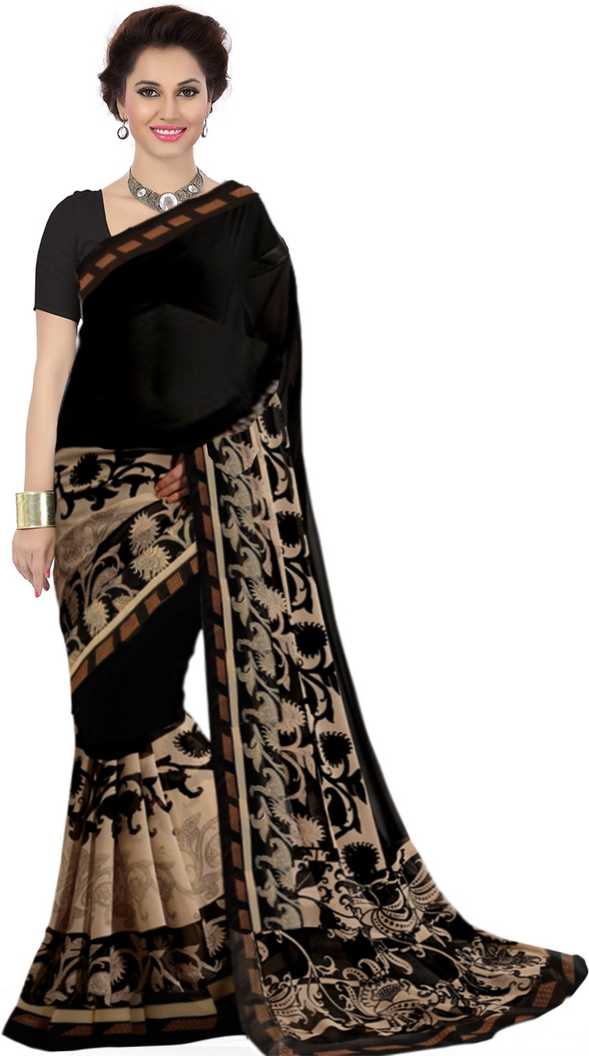 Printed Fashion Poly Georgette Saree (Black)