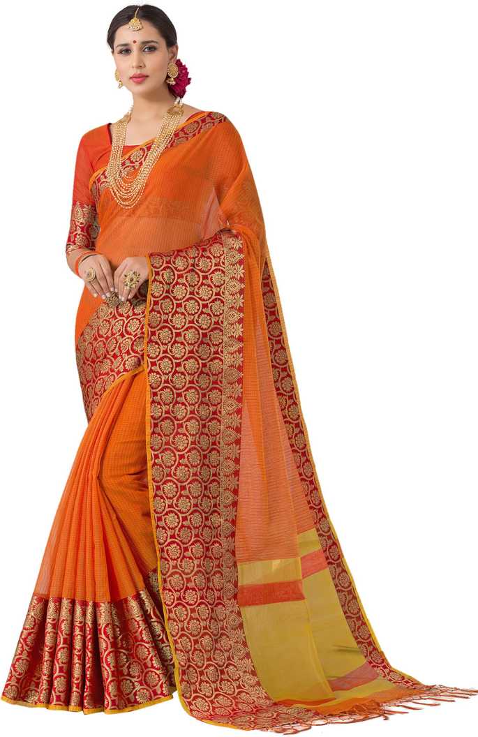 Woven Banarasi Cotton Silk Saree (Orange)