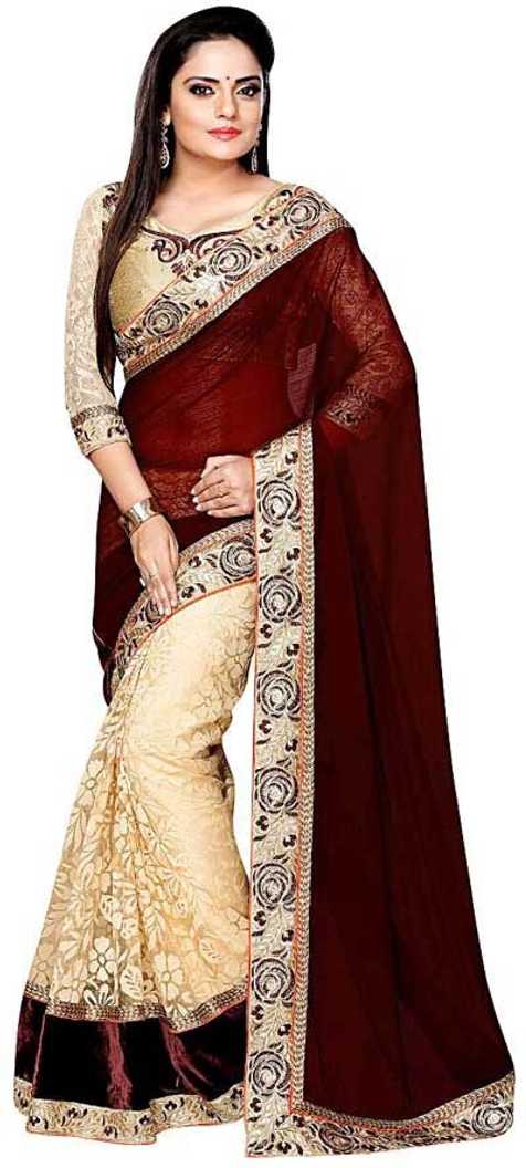 Embroidered Bollywood Cotton Blend Saree (Brown)