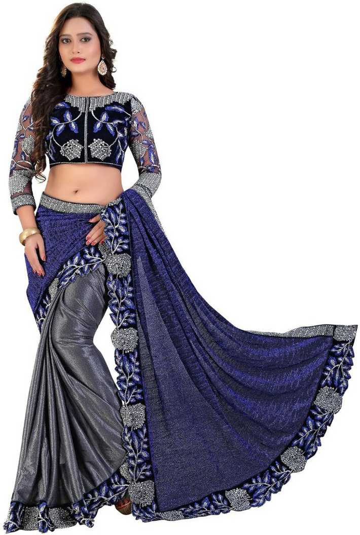 Embroidered Bollywood Lycra Blend Saree (Multicolor)
