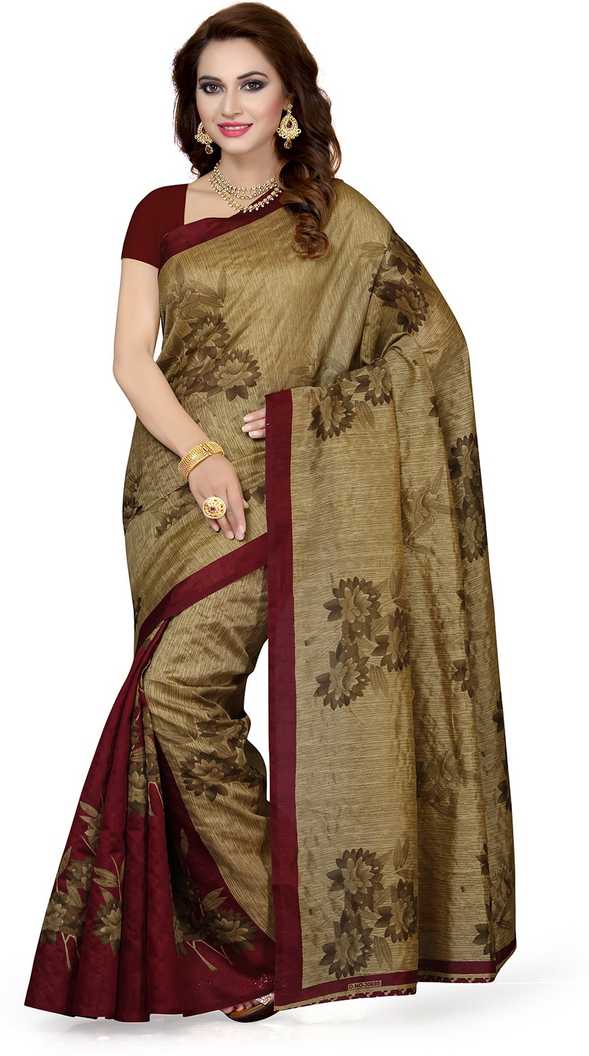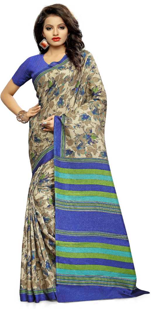Floral Print, Printed Daily Wear Poly Georgette Saree (Beige)#JustHere