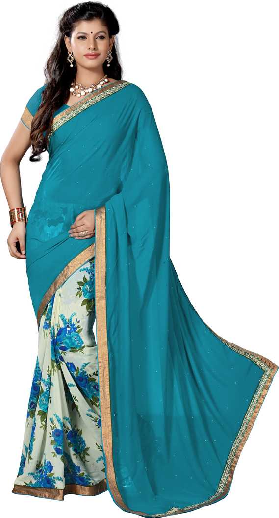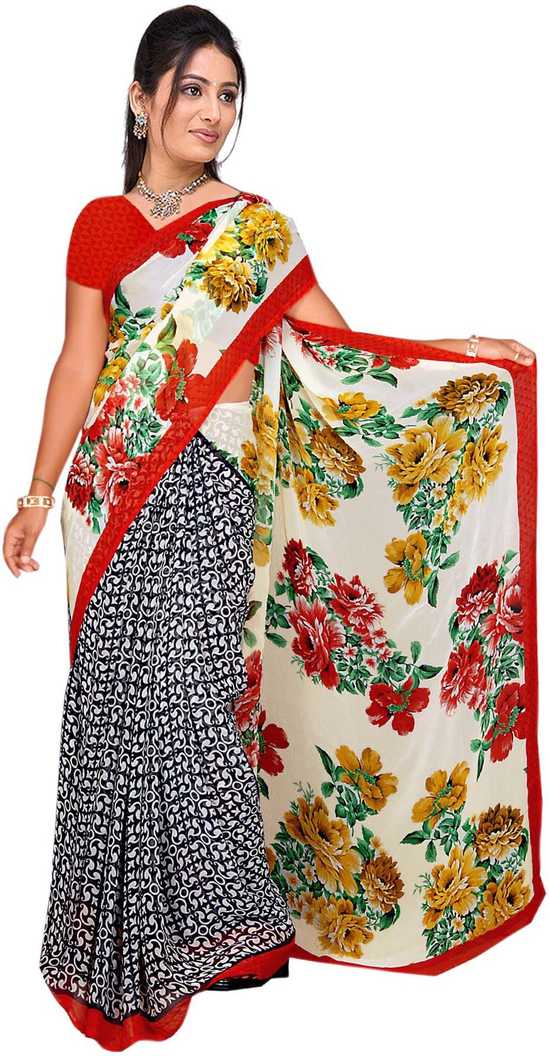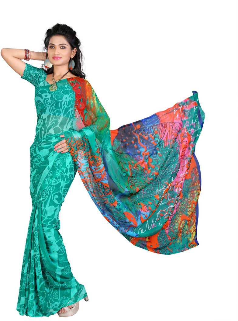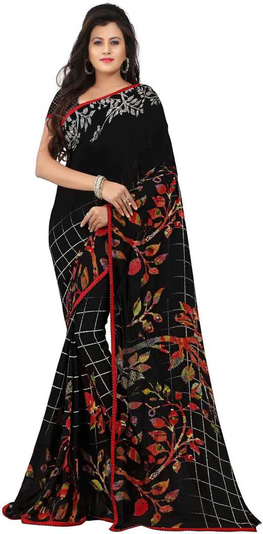 Floral Print Fashion Poly Georgette Saree (Multicolor)
