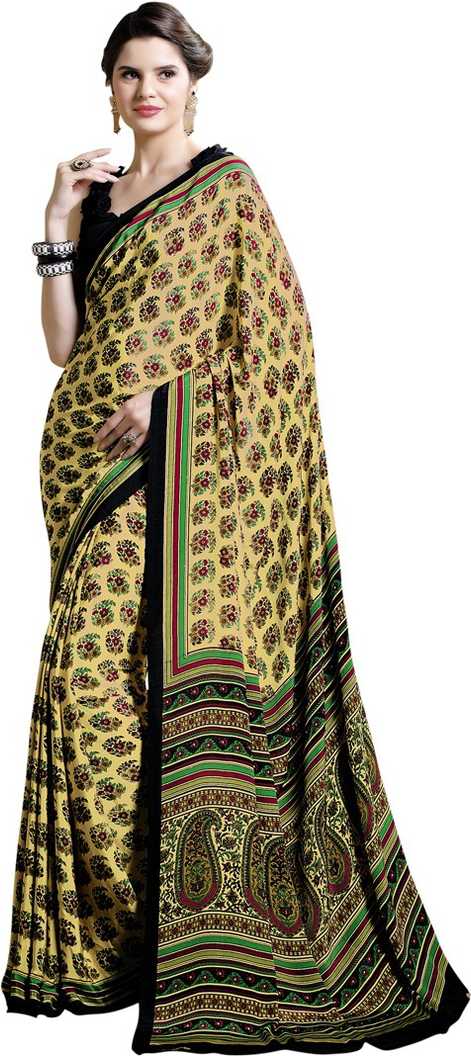 Printed, Floral Print Fashion Poly Crepe Saree (Yellow, Black)#JustHere