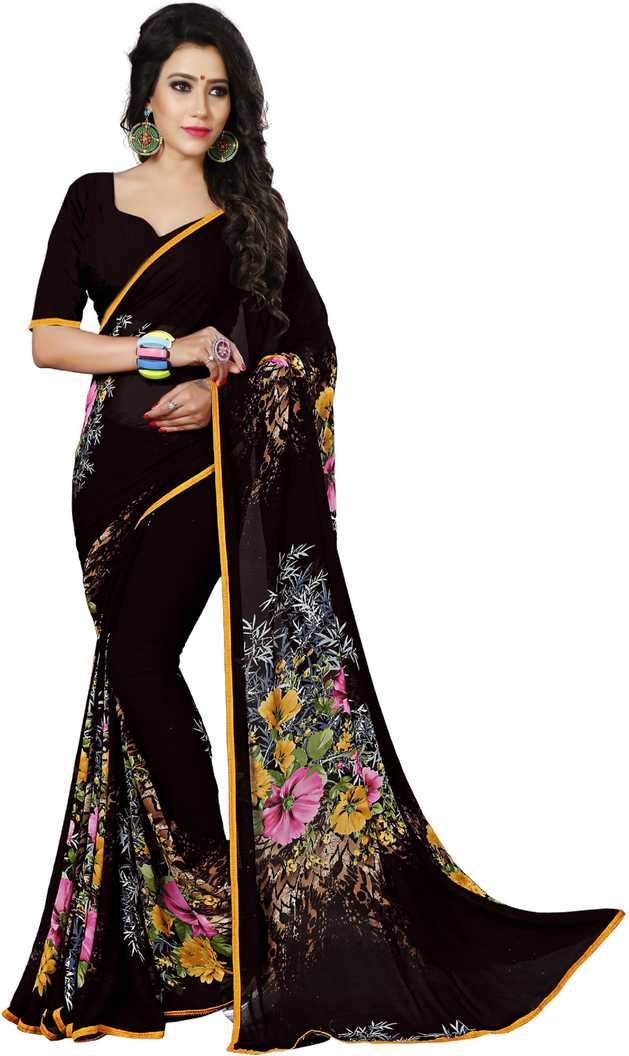 Floral Print Daily Wear Poly Georgette Saree (Multicolor)