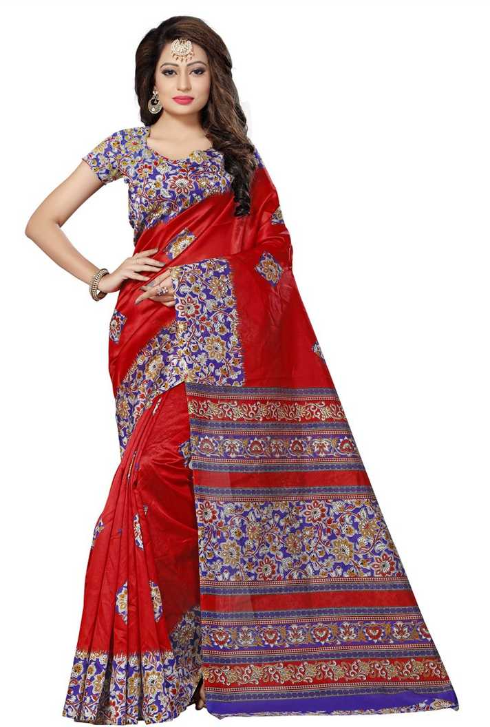 Floral Print Kalamkari Poly Silk Saree (Red)#JustHere