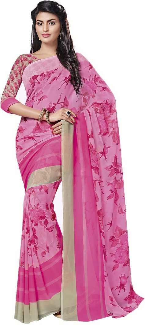 Floral Print Fashion Poly Georgette Saree (Pink)
