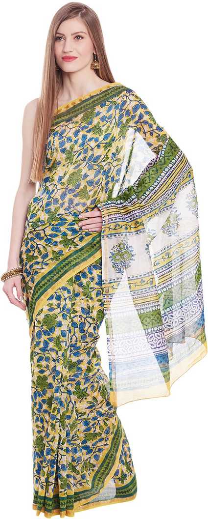 FabTag - Design Willa Printed, Floral Print Fashion Silk Cotton Blend Saree...