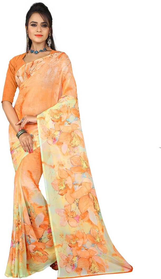 Floral Print Fashion Poly Georgette Saree (Orange)