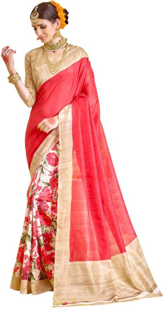 Floral Print Bollywood Art Silk Saree (Multicolor)