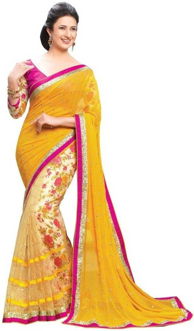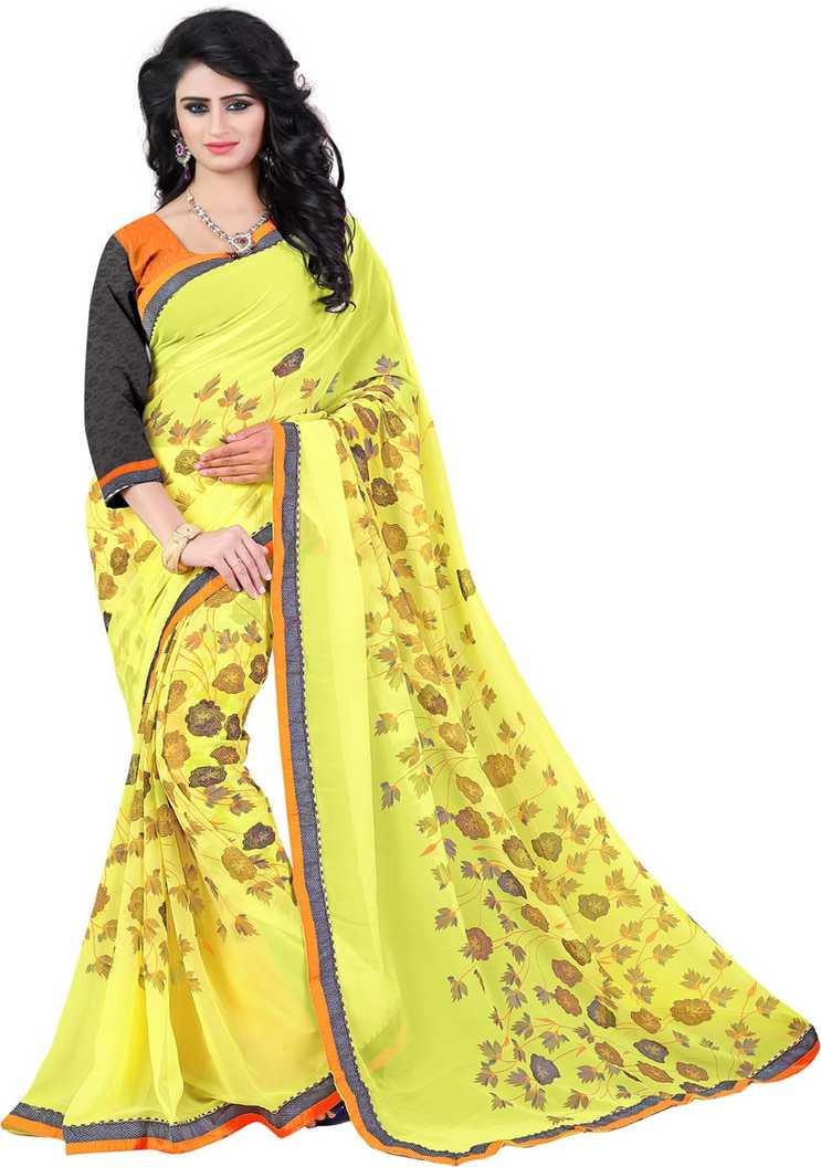 Floral Print Fashion Synthetic Georgette Saree (Yellow)