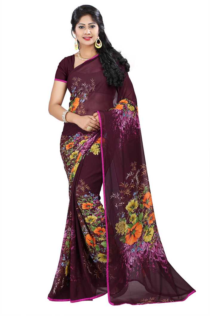 Printed, Floral Print Daily Wear Poly Georgette Saree (Purple, Multicolor)